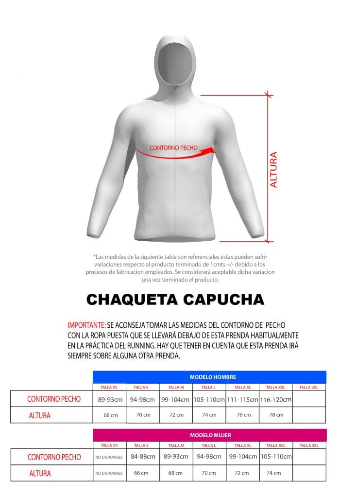NOTA IMPORTANTE: !OJO! TEN EN CUENTA QUE LOS CHALECOS SE SUELEN LLEVAR CON ALGUNA PRENDA DEBAJO, PARA CALCULAR TU MEDIDA CORRECTAMENTE ES IDEAL QUE TE MIDAS CON LA CAMISETA QUE SUELES LLEVAR EN TUS ENTRENOS PUESTA.
