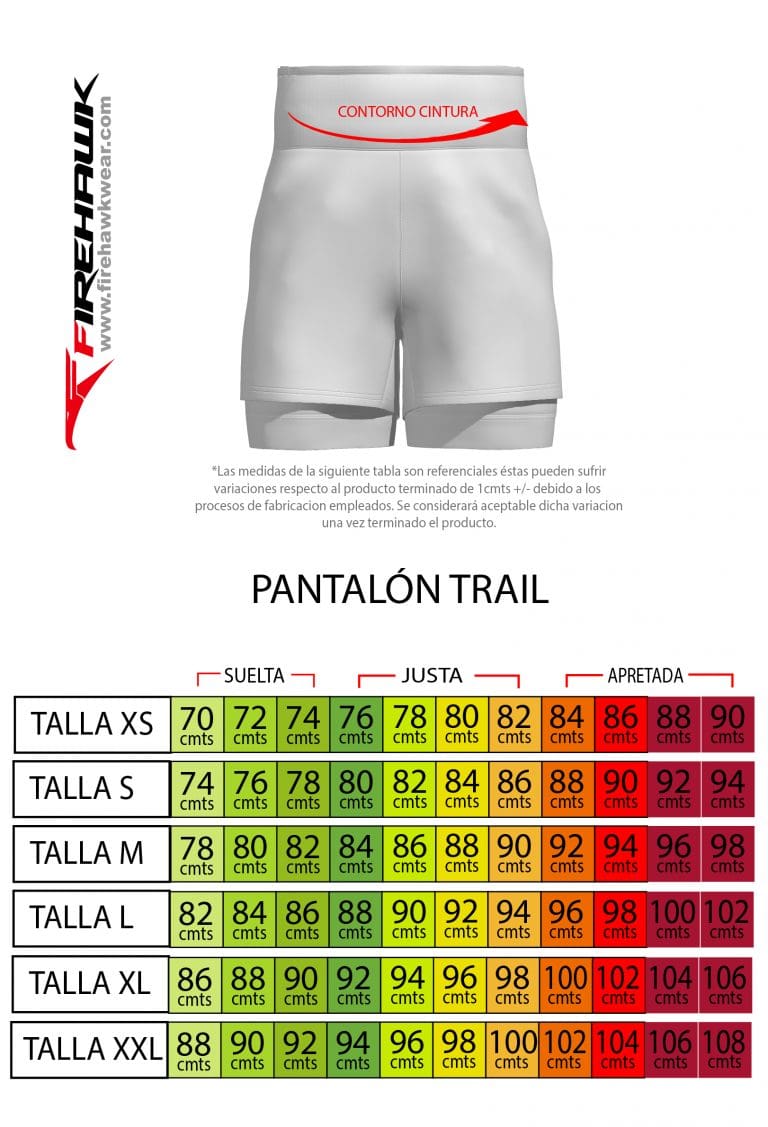 NOTA IMPORTANTE: EL SHORT DE TRAIL LLEVA EN LA CINTURA UN BOLSILLO PORTA OBJETOS, NO SE ACONSEJA UNA TALLA DEMASIADA SUELTA PARA EVITAR REBOTES.