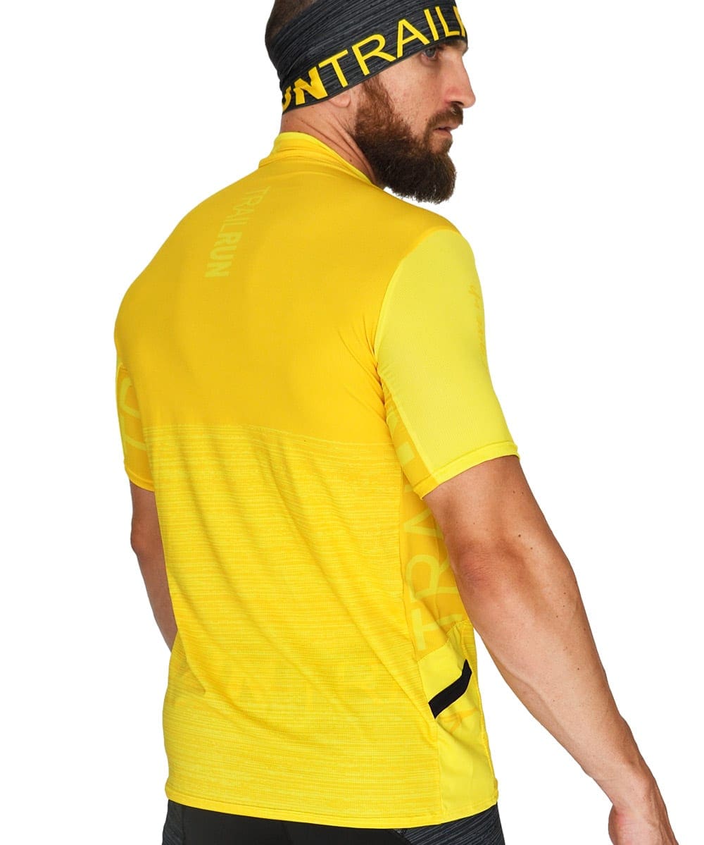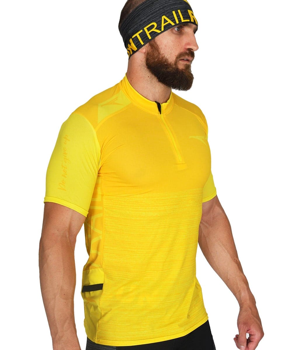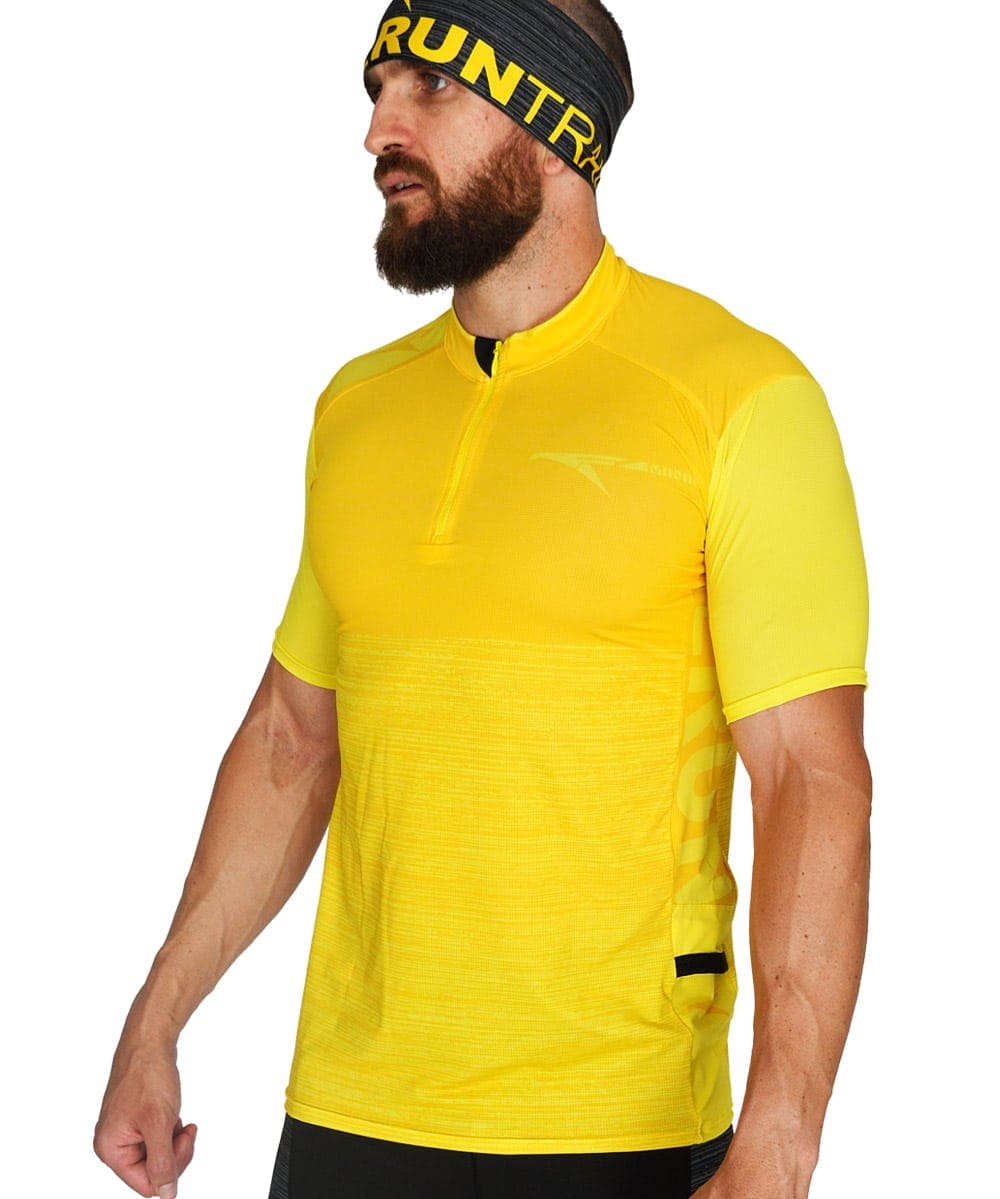 Camiseta Técnica de trail running tipo maillot con cremallera y Patrón Slim fit entallado, Modelo Minimal Lemon.