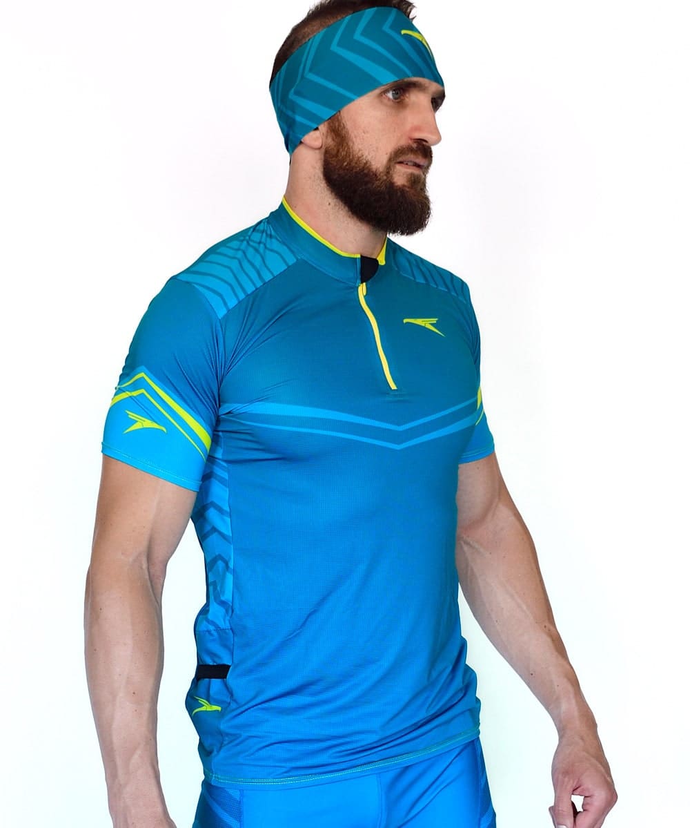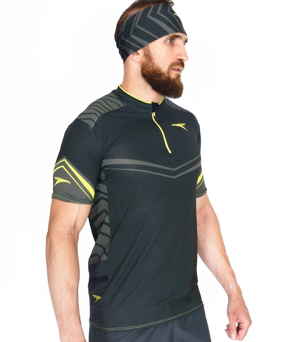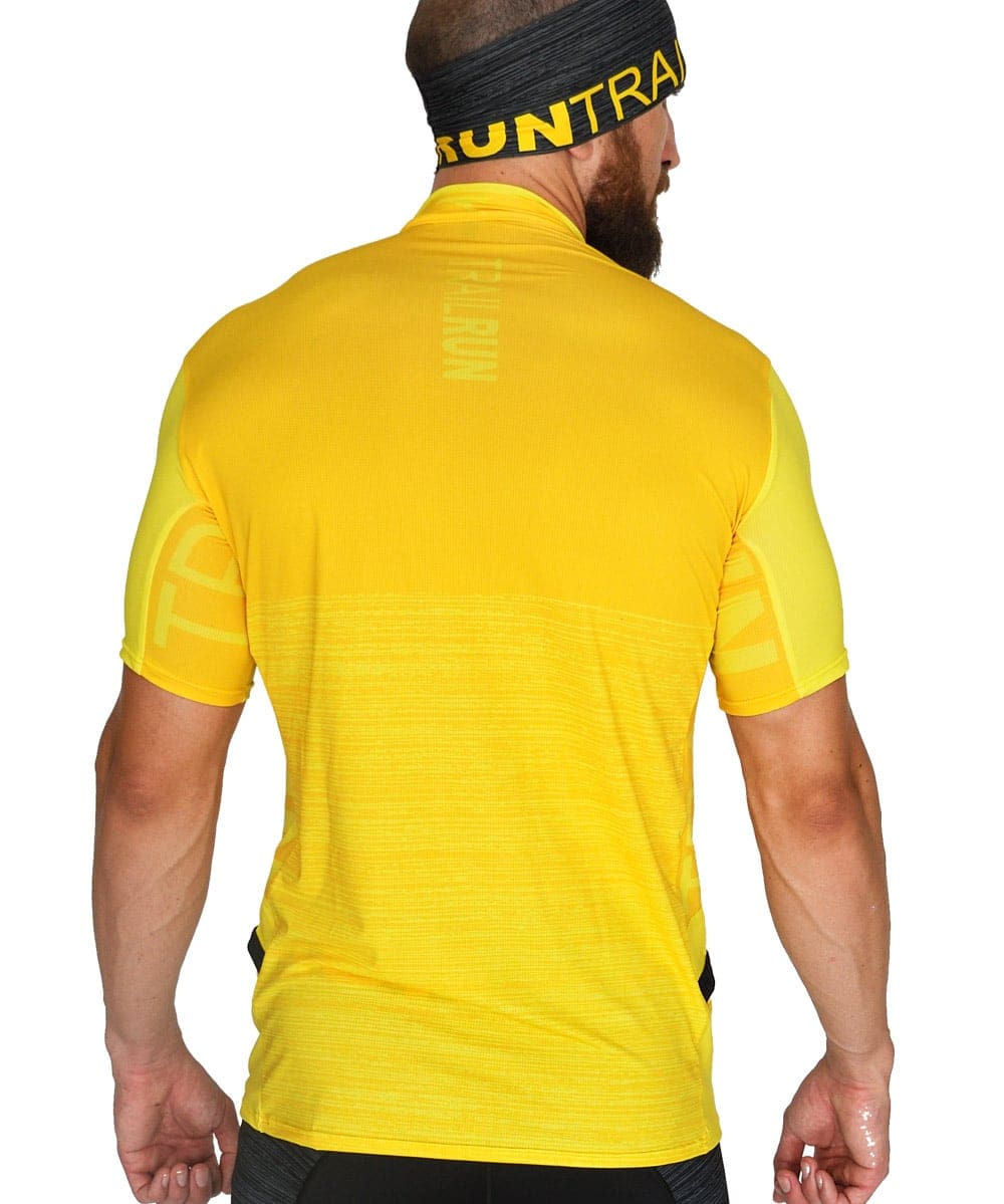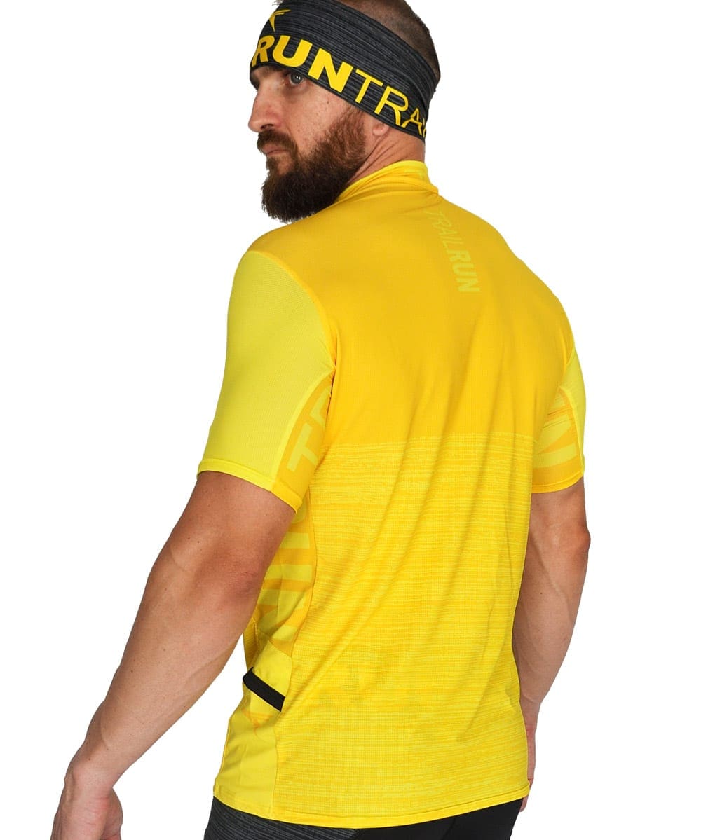 Camiseta Técnica de trail running tipo maillot con cremallera y Patrón Slim fit entallado, Modelo Minimal Lemon.