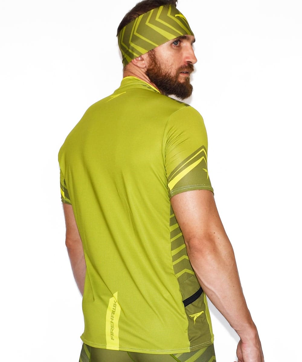 Camiseta Técnica de trail running tipo maillot con cremallera y Patrón Slim fit entallado, Modelo #Midi Grass.