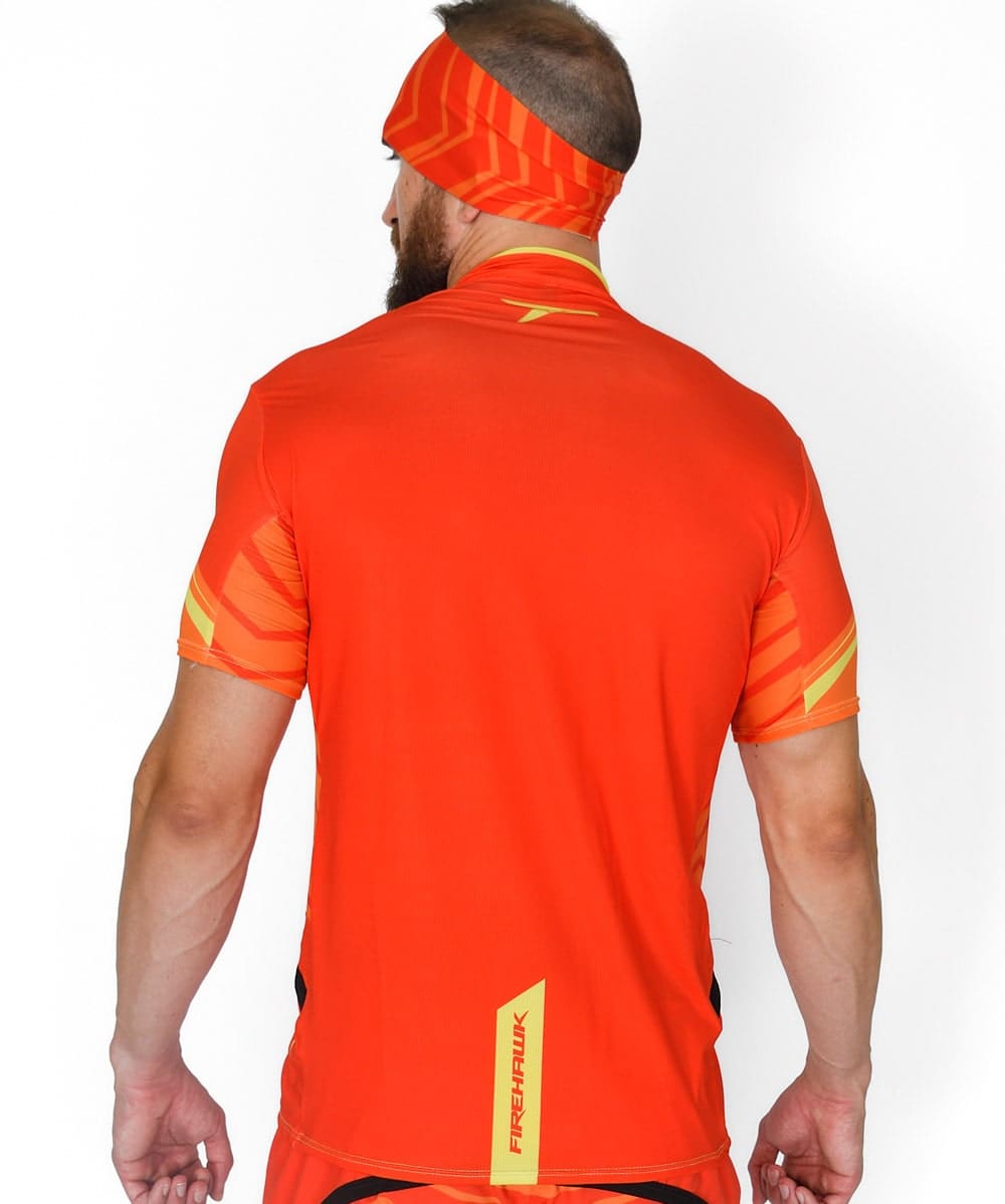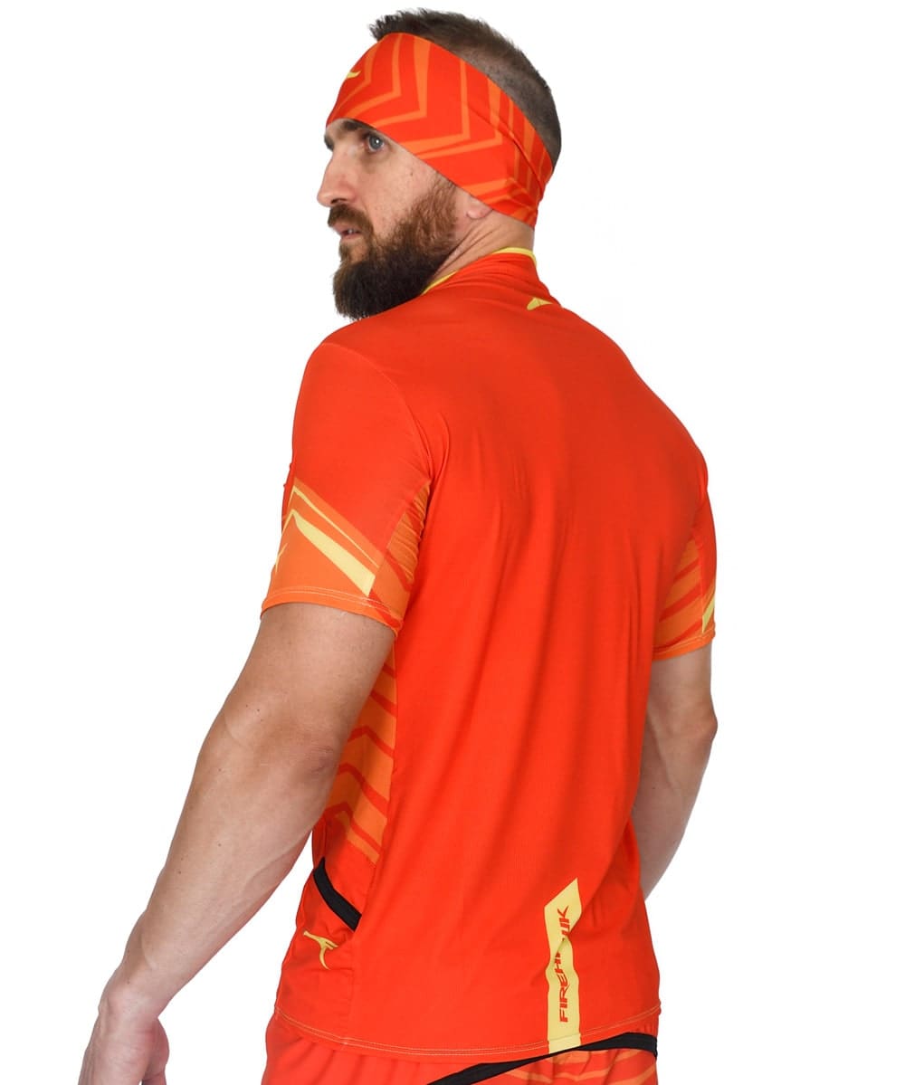 Camiseta Técnica de trail running tipo maillot con cremallera y Patrón Slim fit entallado, Modelo #Midi Orange.