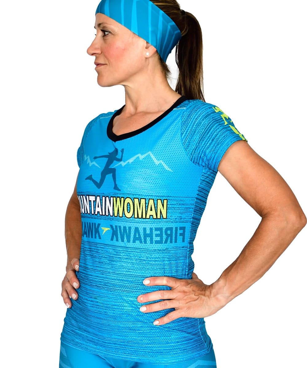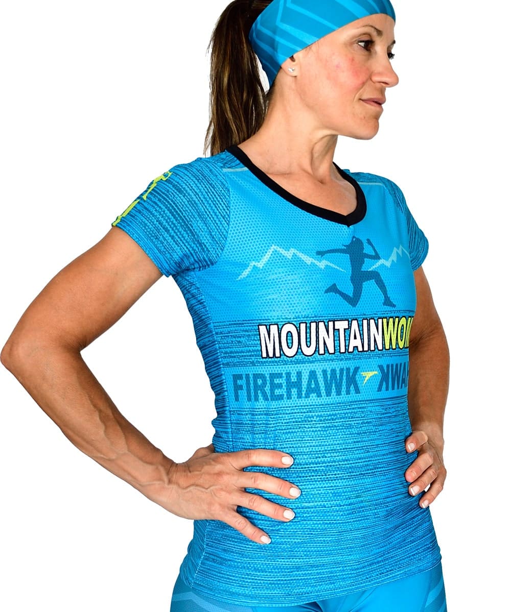 Camiseta Técnica de trail running para Mujer modelo Mountain Woman diseñada  con tejido de alta tenacidad, transpirable y rápido secado. Peso estimado de 75gr en talla M.