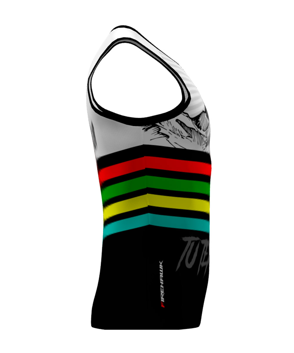 Camiseta Técnica de tirantes para trail running personalizada con diseño nº16, diseñada con tejido de alta tenacidad, transpirable y rápido secado. Peso aprox. de 75gr.