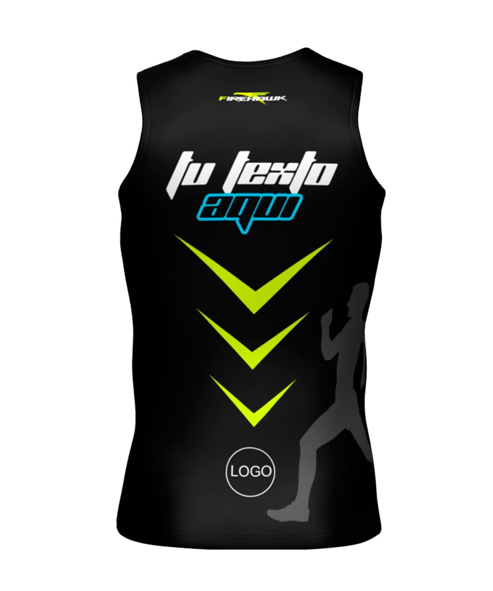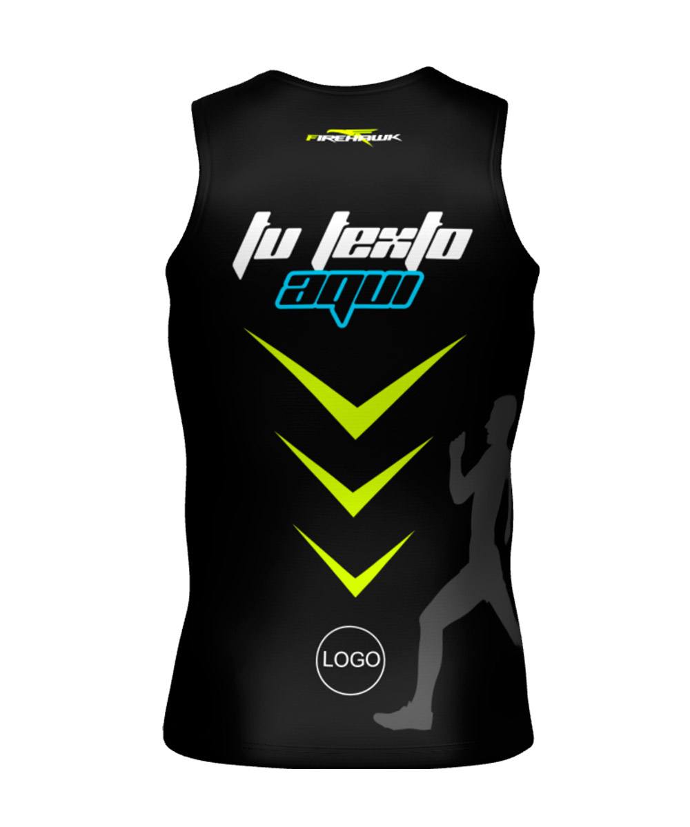 Camiseta Técnica de tirantes para trail running personalizada con diseño nº2, diseñada con tejido de alta tenacidad, transpirable y rápido secado. Peso aprox. de 75gr.