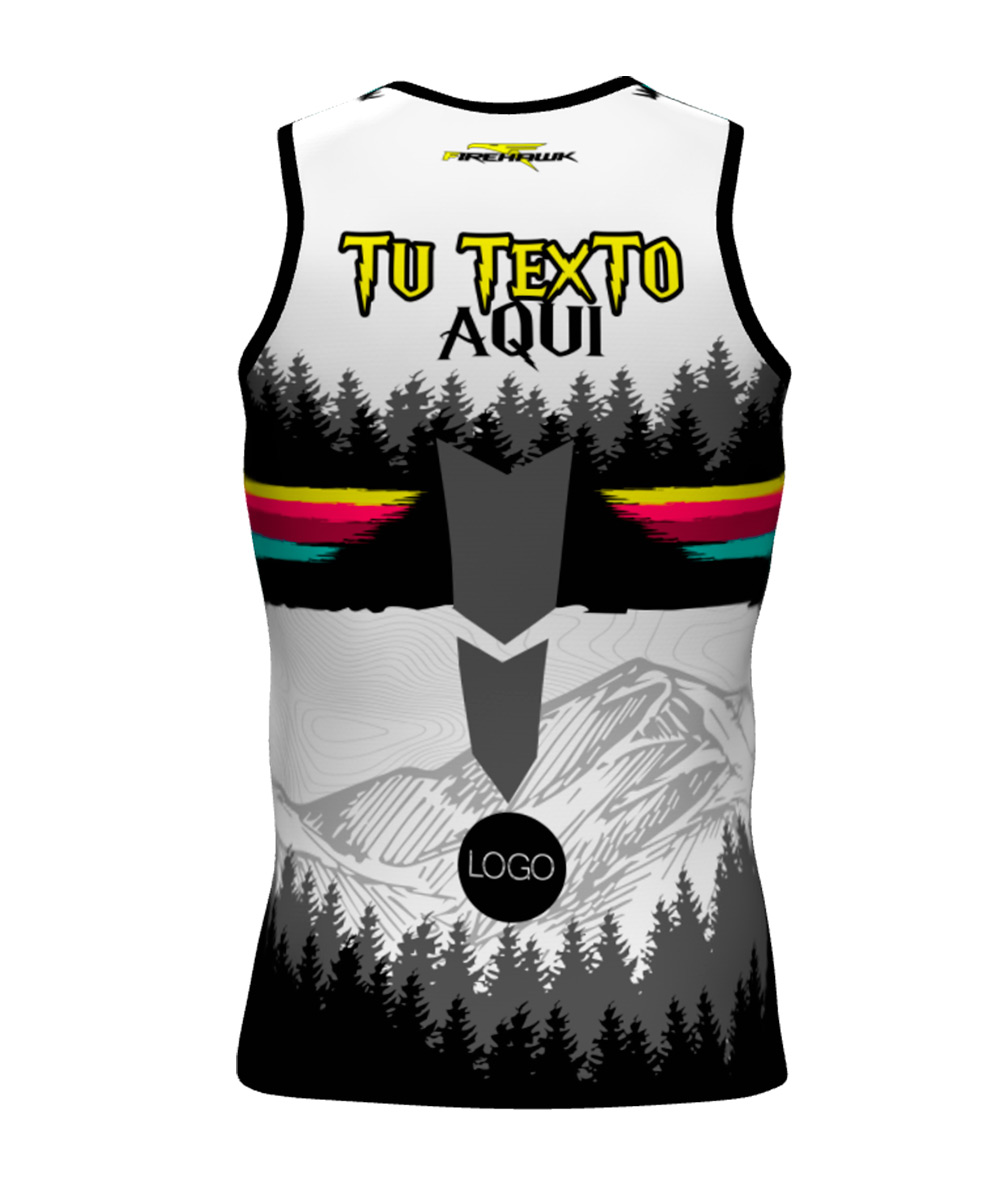 Camiseta Técnica de tirantes para trail running personalizada con diseño nº25, diseñada con tejido de alta tenacidad, transpirable y rápido secado. Peso aprox. de 75gr.