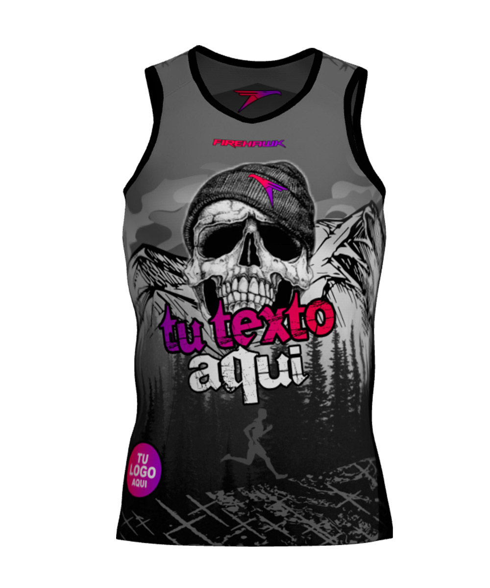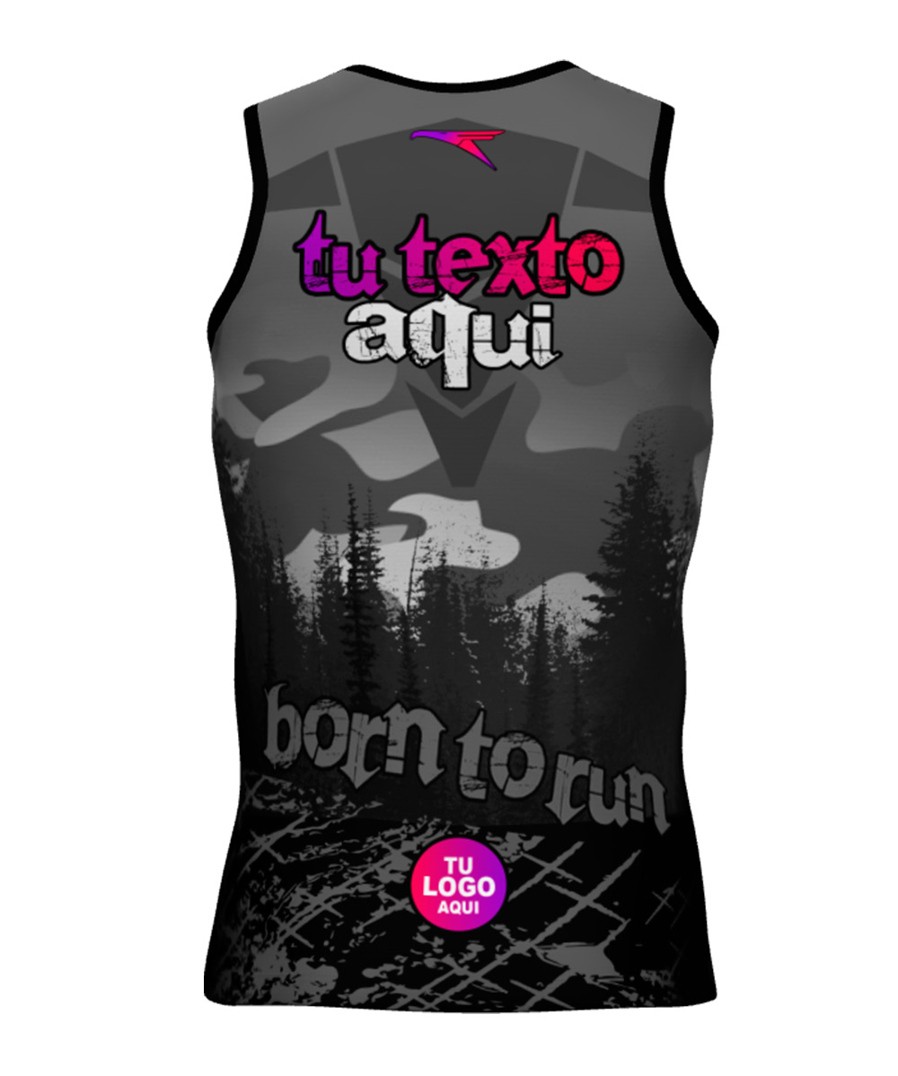 Camiseta Técnica de tirantes para trail running personalizada con diseño nº31, diseñada con tejido de alta tenacidad, transpirable y rápido secado. Peso aprox. de 75gr.