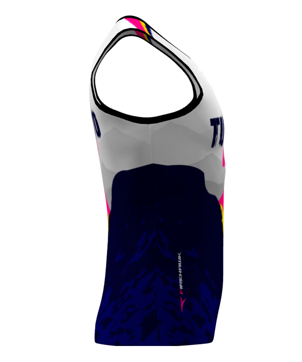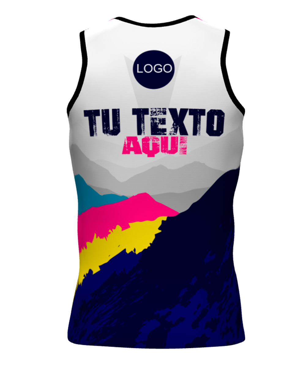 Camiseta Técnica de tirantes para trail running personalizada con diseño nº38, diseñada con tejido de alta tenacidad, transpirable y rápido secado. Peso aprox. de 75gr.
