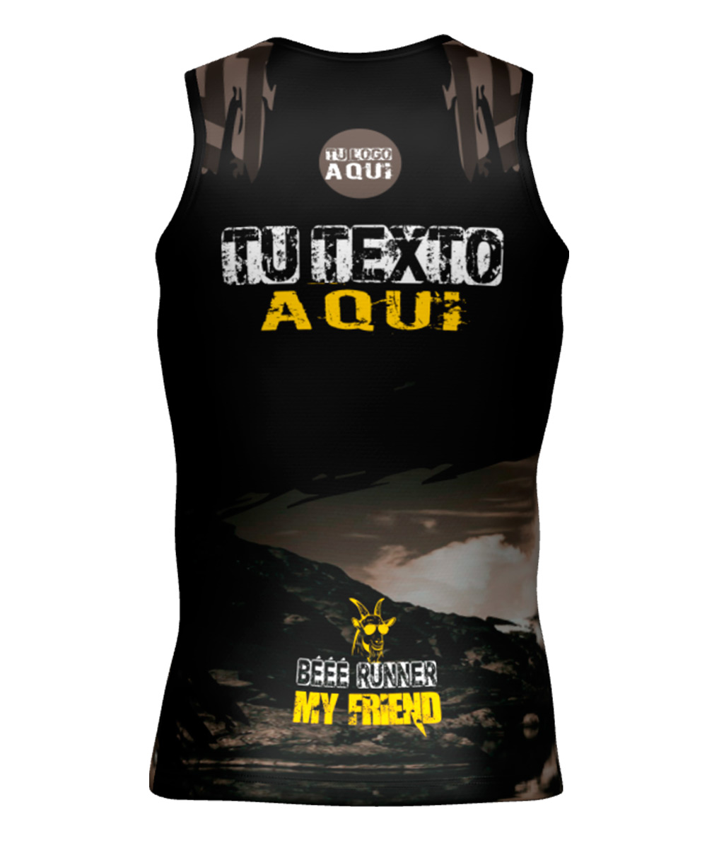 Camiseta Técnica de tirantes para trail running personalizada con diseño nº40, diseñada con tejido de alta tenacidad, transpirable y rápido secado. Peso aprox. de 75gr.