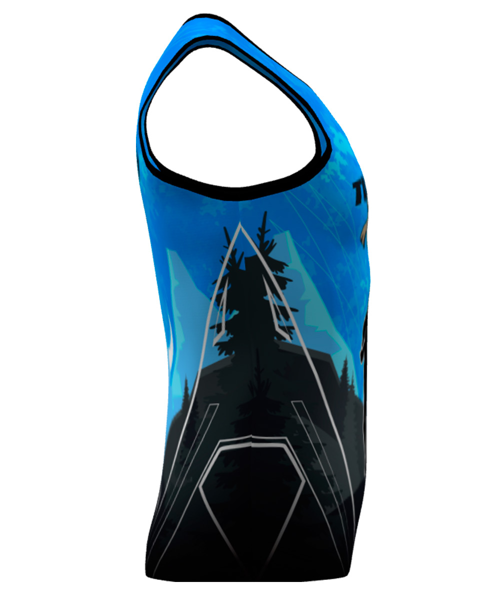 Camiseta Técnica de tirantes para trail running personalizada con diseño nº45, diseñada con tejido de alta tenacidad, transpirable y rápido secado. Peso aprox. de 75gr.