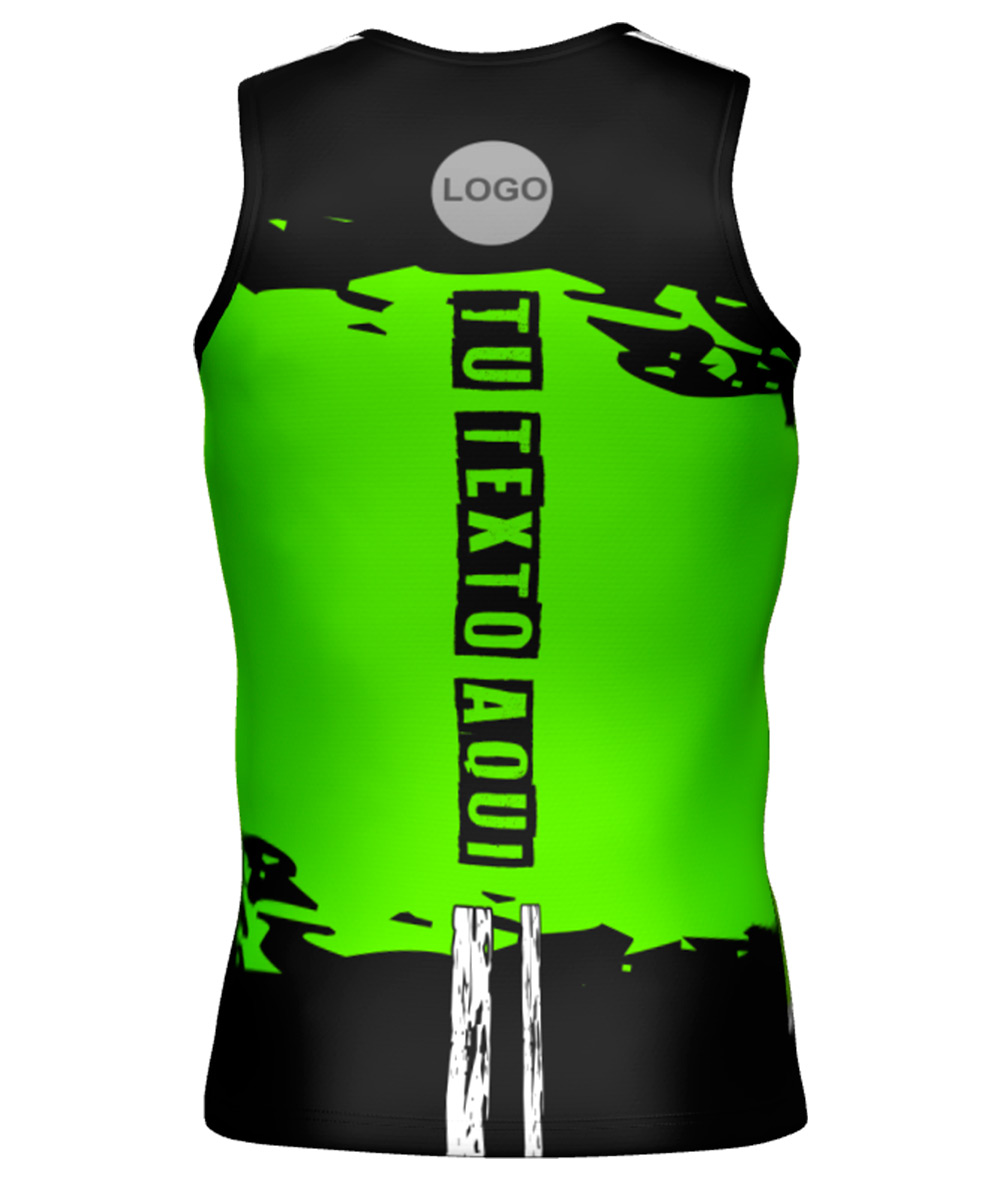 Camiseta Técnica de tirantes para trail running personalizada con diseño nº52, diseñada con tejido de alta tenacidad, transpirable y rápido secado. Peso aprox. de 75gr.
