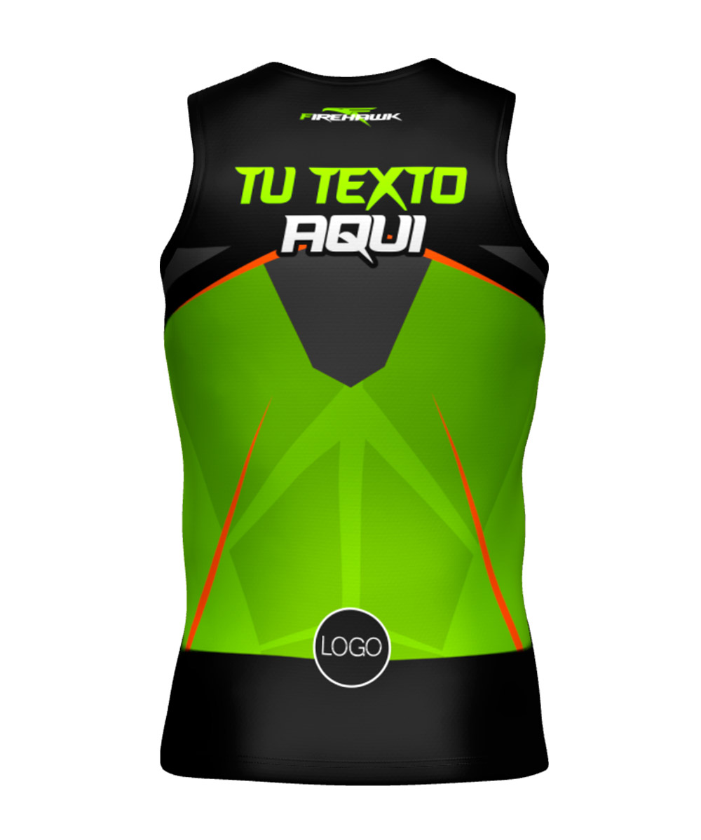 Camiseta Técnica de tirantes para trail running personalizada con diseño nº6, diseñada con tejido de alta tenacidad, transpirable y rápido secado. Peso aprox. de 75gr.