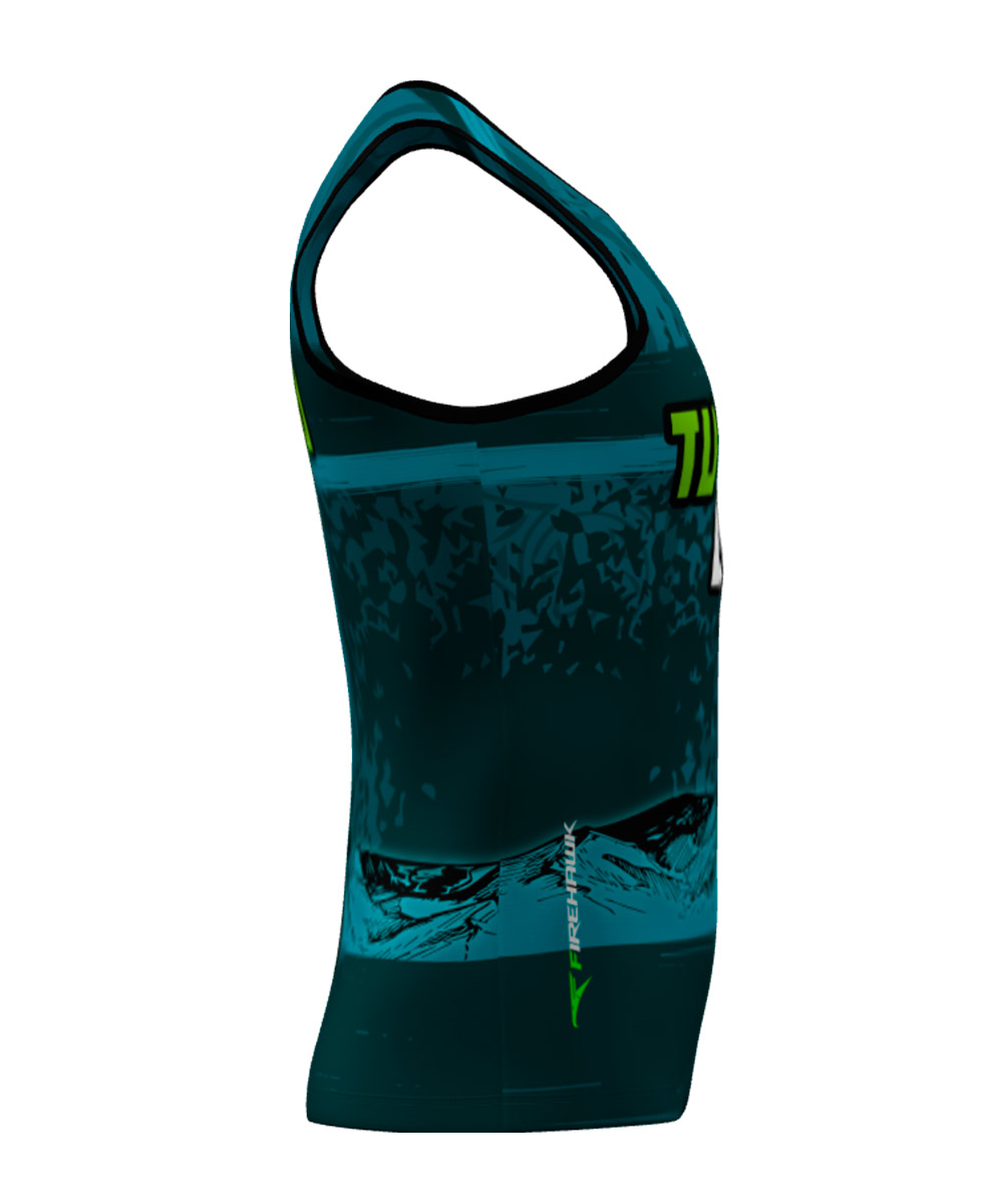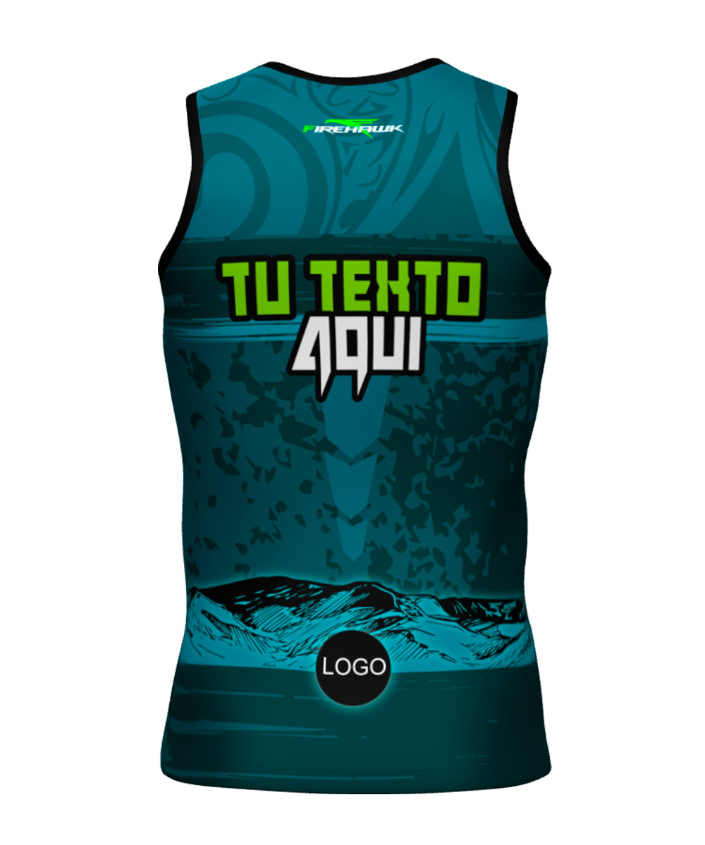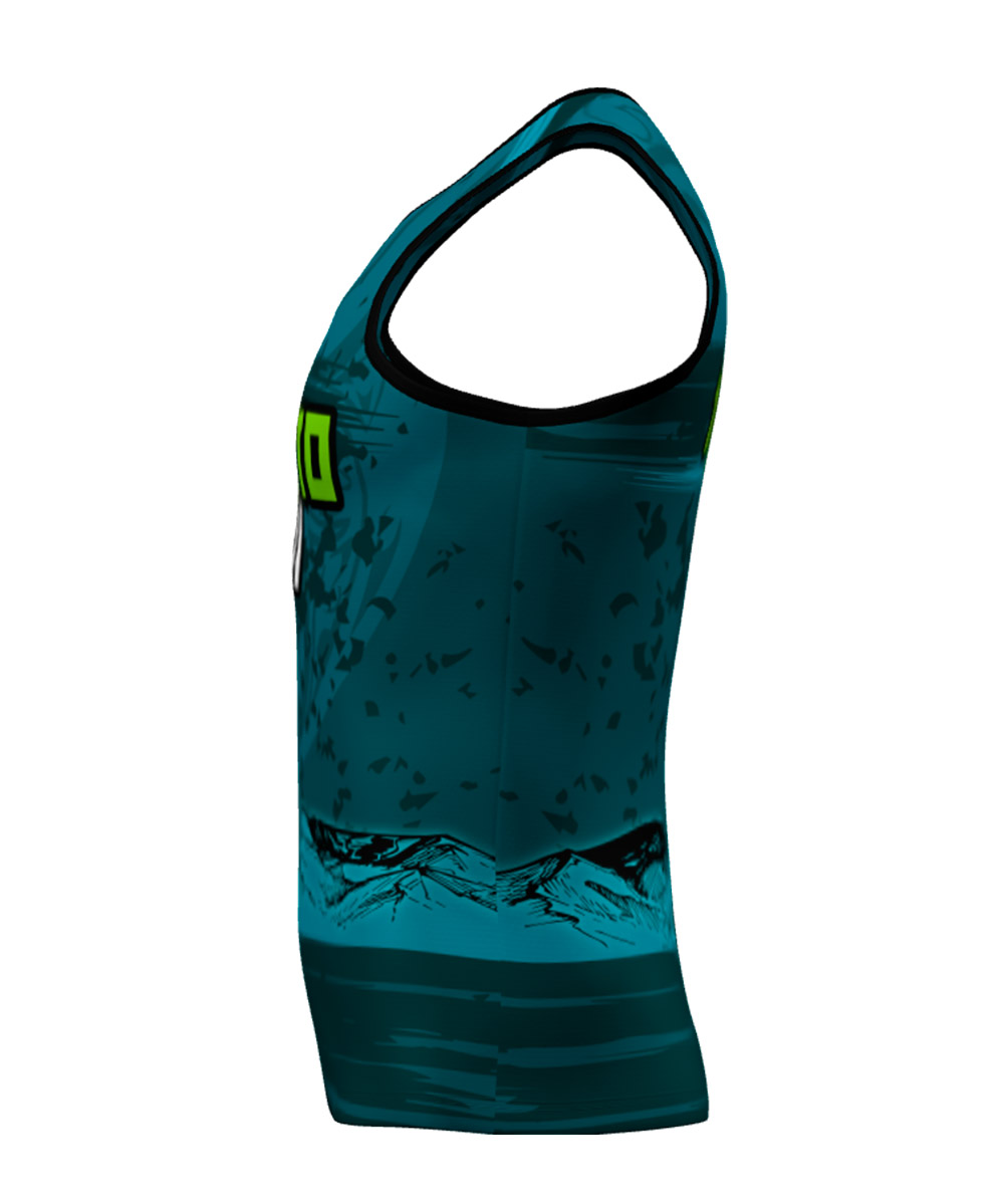 Camiseta Técnica de tirantes para trail running personalizada con diseño nº7, diseñada con tejido de alta tenacidad, transpirable y rápido secado. Peso aprox. de 75gr.