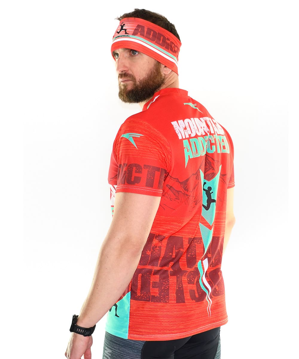 -Camiseta Técnica de trail running para Hombre modelo Mountain Addicted, diseñada con tejido de alta tenacidad, transpirable y rápido secado. Peso estimado de 75gr en talla M.