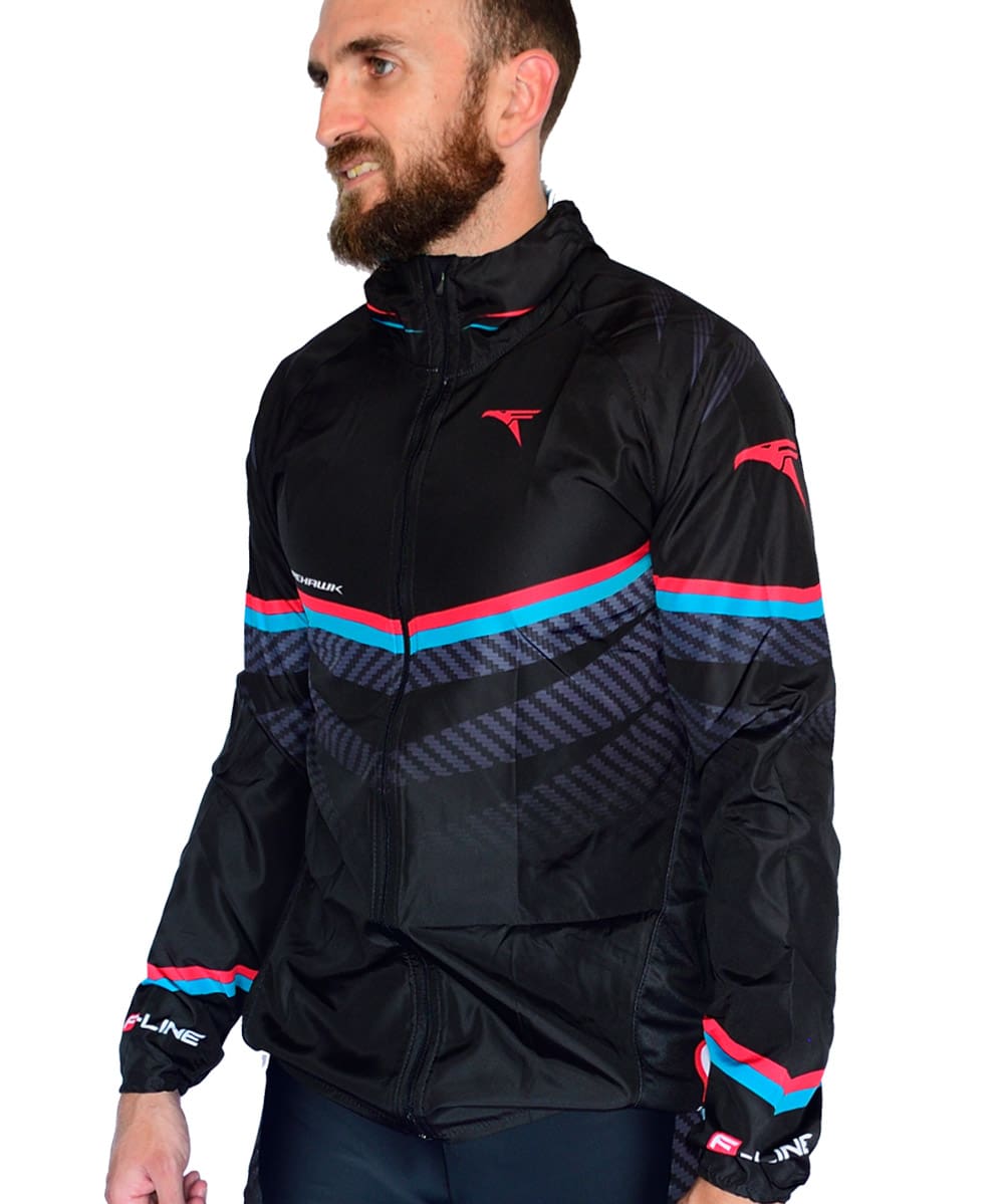 Chaqueta ultraligera modelo Ogún realizada con tejido Hidrofugado tratado con teflón repelente al agua. Articulo sin membrana. Indicada para la práctica deportiva en condiciones de lluvia débil y climas templados. Articulo plegable sobre su propio bolsillo.