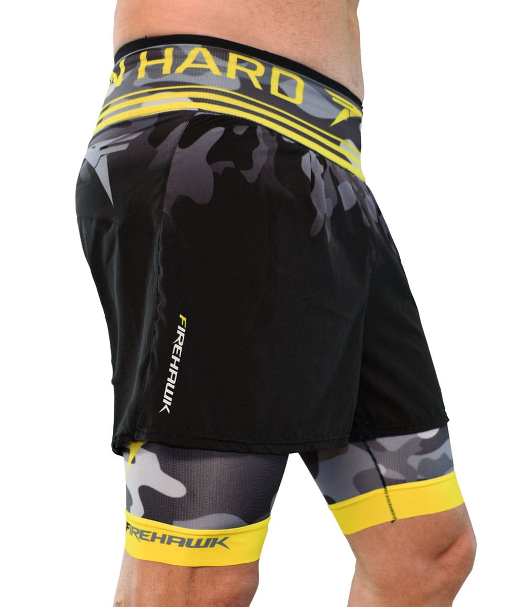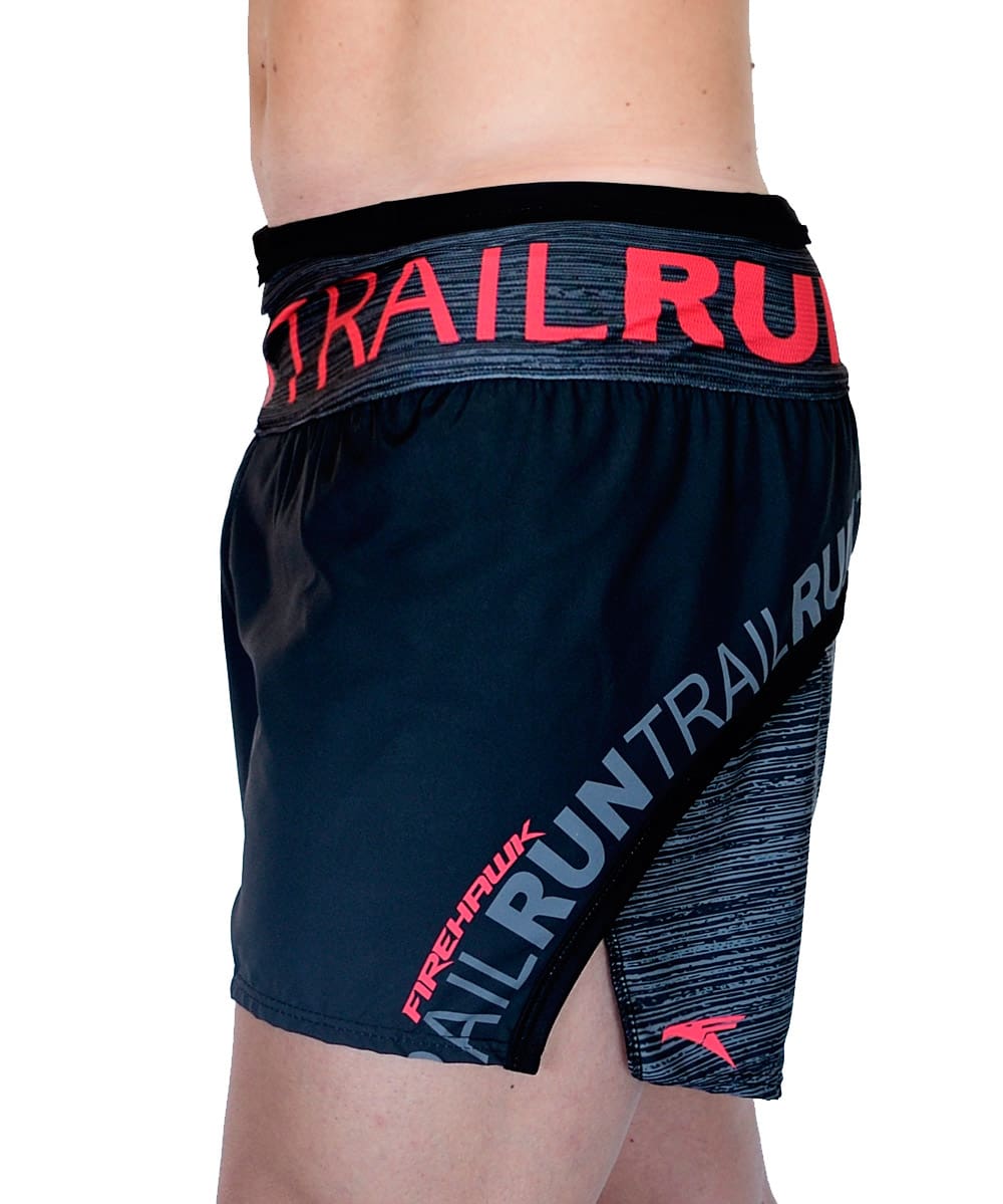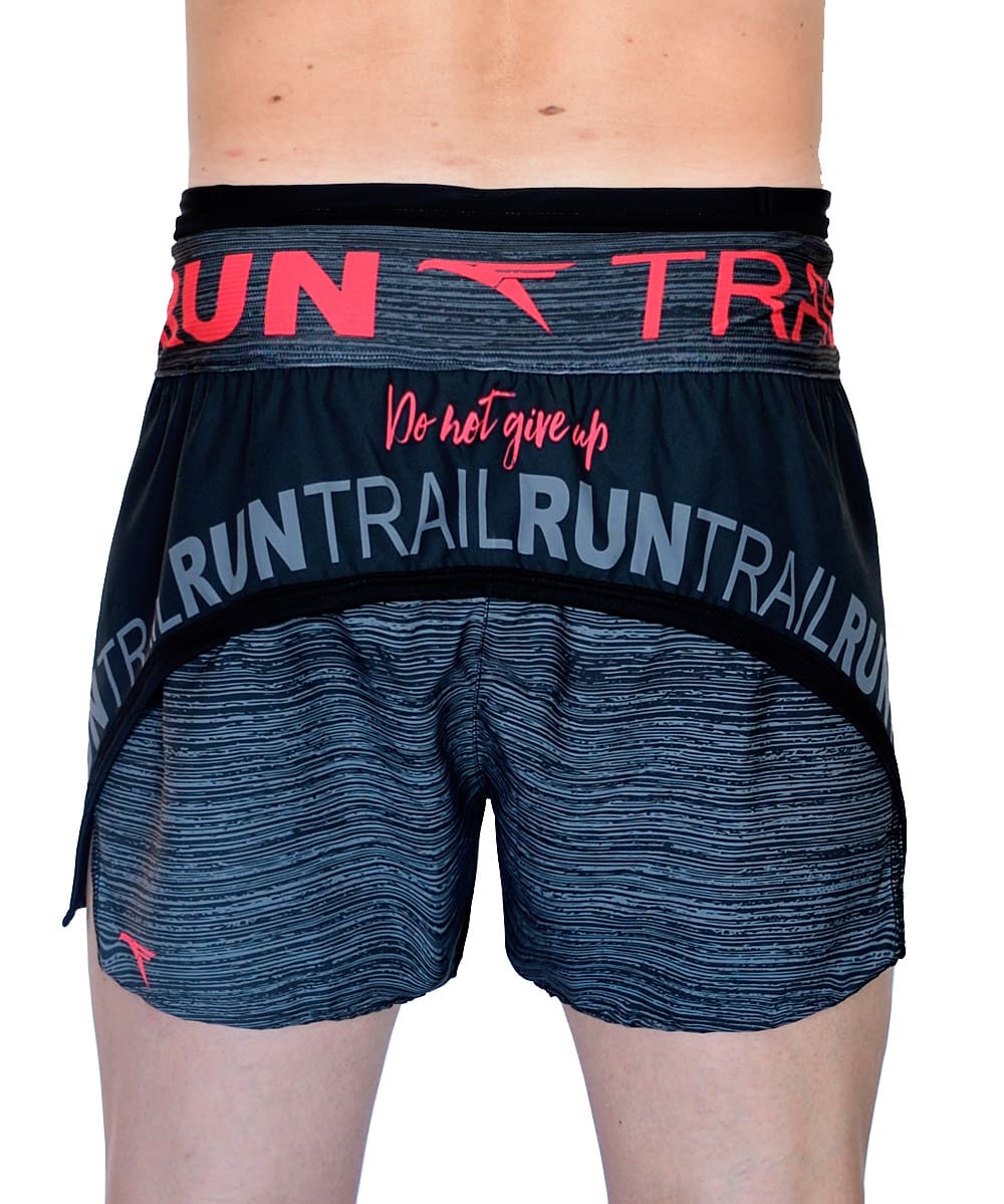 Short camal abierto para trail running Modelo Minimal Coral. Confeccionado con tejido ultra ligero y hidrofugado muy comodo y fresco. Cintura con bolsillo circundante para barritas y geles energéticos.