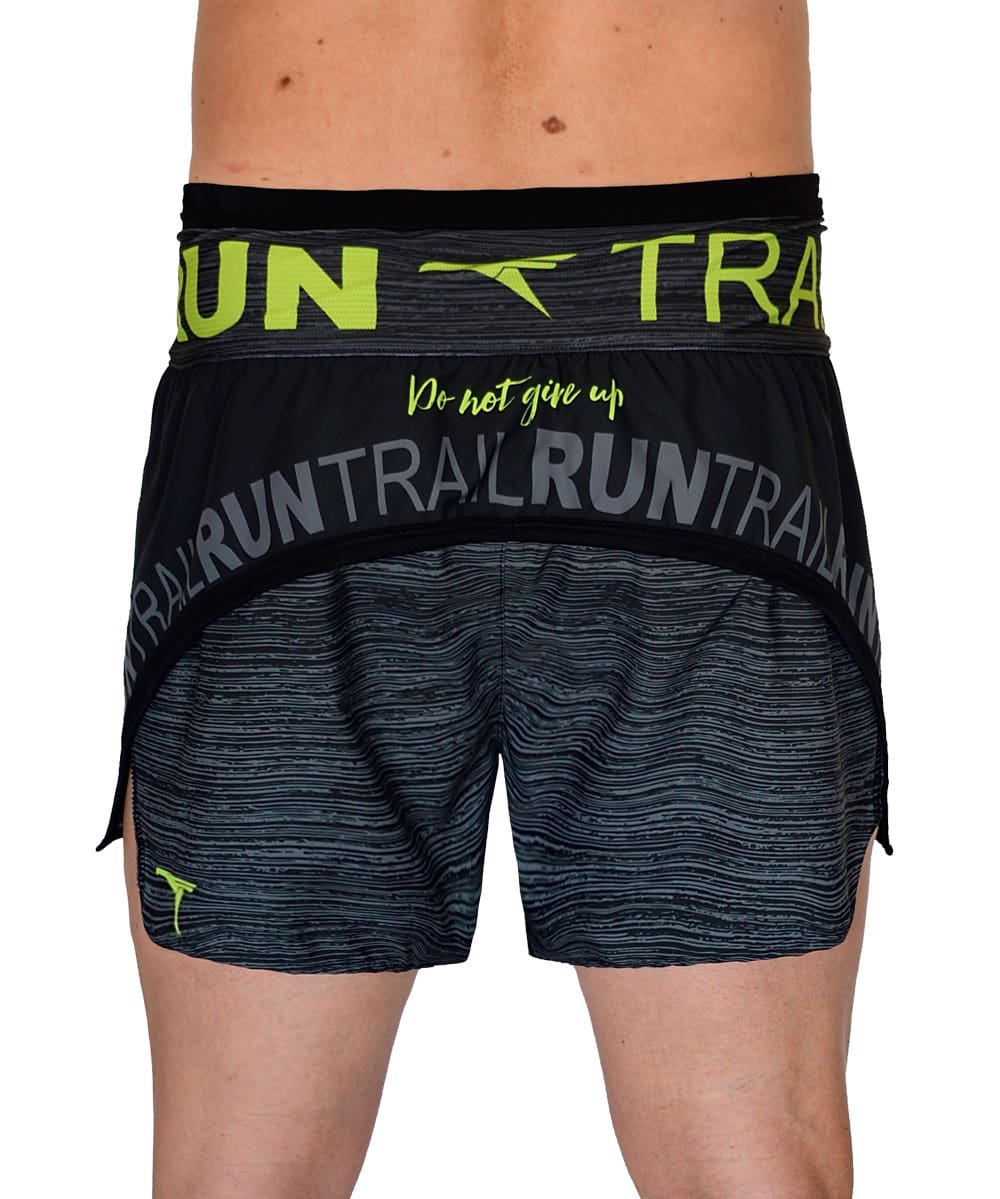 Short camal abierto para trail running Modelo Minimal Pistachio. Confeccionado con tejido ultra ligero y hidrofugado muy comodo y fresco. Cintura con bolsillo circundante para barritas y geles energéticos.